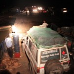 Um es kurz zu machen: Wir sind jetzt gerade im Senegambia Hotel angekommen. Insgesamt mehr als 200 Kilometer Umweg bei Nacht auf zum Teil so staubigen Straßen, dass man die Rücklichter des Vordermanns nicht mehr erkennen konnte reißt man eben nicht mal eben so ab. Die versammelte Mannschaft war sichtbar erleichtert, als das Blue Kitchen, das Ausbildungsrestaurant der DBO hier in Gambia, in Sichtweite kam. Highlight der Fahrt war ein gambianischer Soldat, der den Trooper vom Fleck weg kaufen wollte. Er war verdammt enttäuscht, dass er erst am Sonntag bei der Versteigerung die Chance hat, den Wagen zu ersteigern.