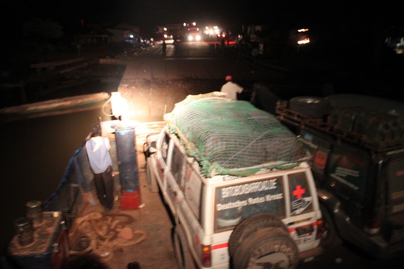 Irgendwann durchquerten wir Kaolack und erreichten die gambianische Grenze. „Briefingtime“, quäkte das Funkgerät. Die Orgs eröffneten uns, dass sich die einzige noch funktionierende Fähre im Fluss festgefahren hatte und somit für heute ausfällt. Afrika pur! Wat nu? Als Alternative wurde die etwas kleinere Fähre am nördlichen Ufer des Gambia Rivers gewählt. Zusätzlich nochmal ungefähr 300 Kilometer, aber arbeitet die ganze Nacht.