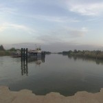 An der Fähre angekommen, stellte sich heraus, dass „etwas kleiner“ leicht untertrieben war. Auf der ersten Fähre, die auf dem Fluss entdeckt wurde, passten ungefähr 5-7 Autos. Nach einer kurzen Schrecksekunde, in der grob überschlagen wurde, wie lange die Überfahrt von 50 Autos dauern würde, kam heraus, dass noch eine Fähre größeren Kalibers im Wechsel fährt. Es wuchs die Hoffnung, den Sonnenaufgang doch noch auf der anderen Flussseite zu erleben.